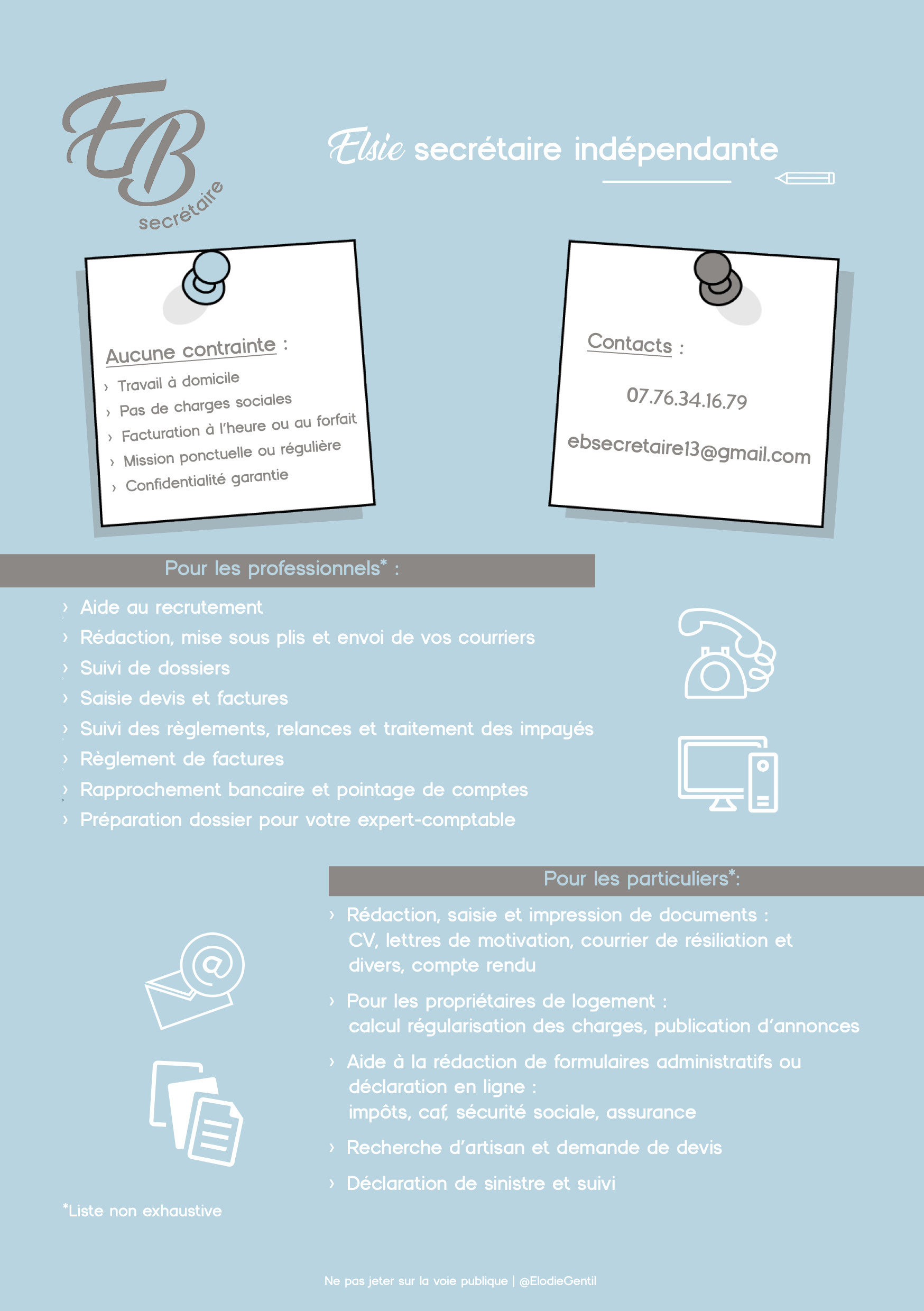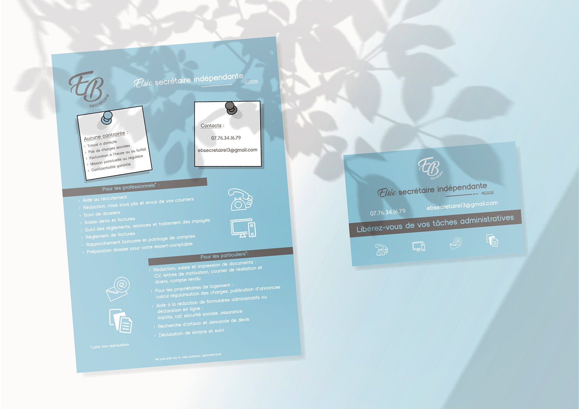 Réalisation d'une carte de visite et d'un flyer pour Elsie, secrétaire indépendante.